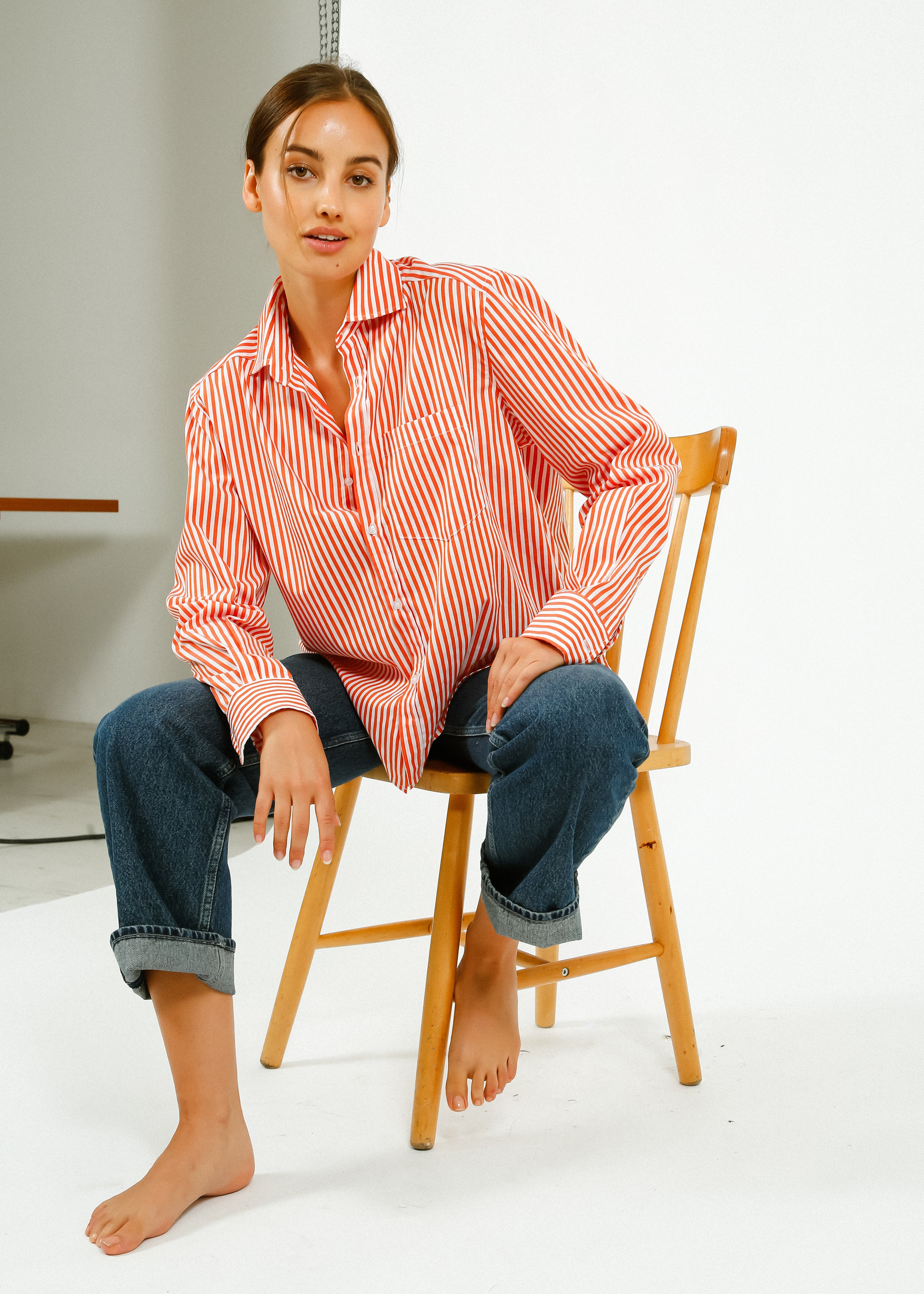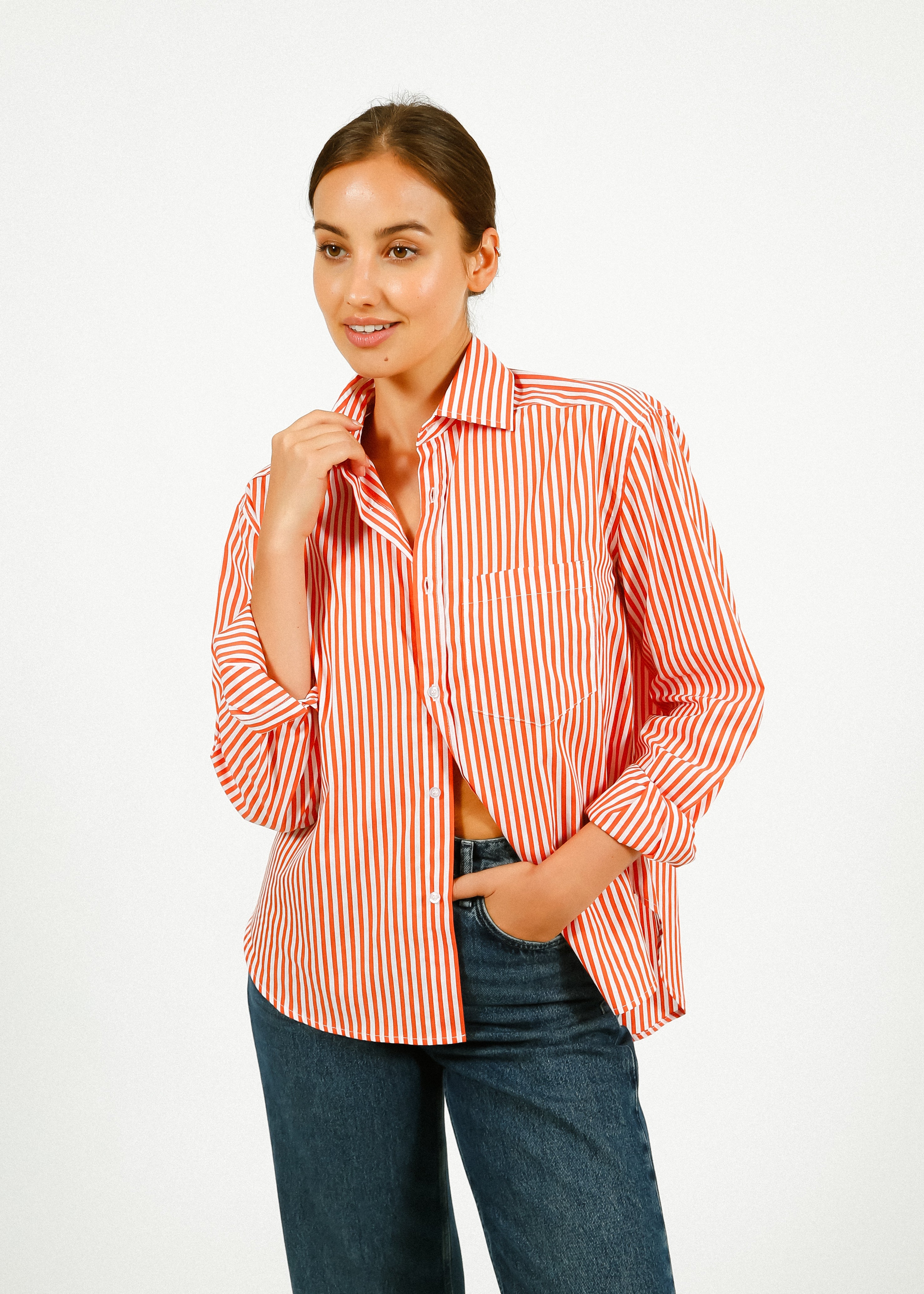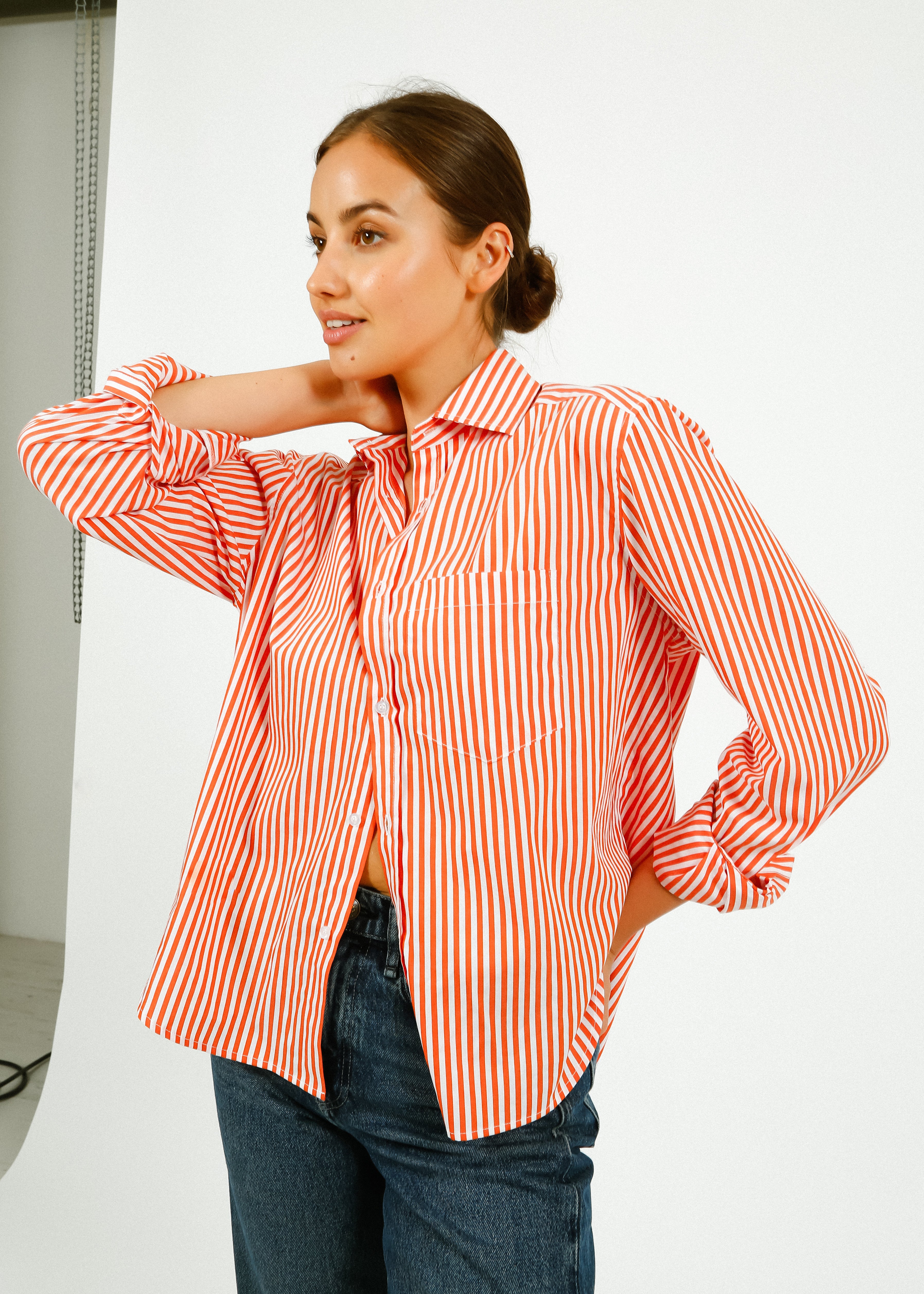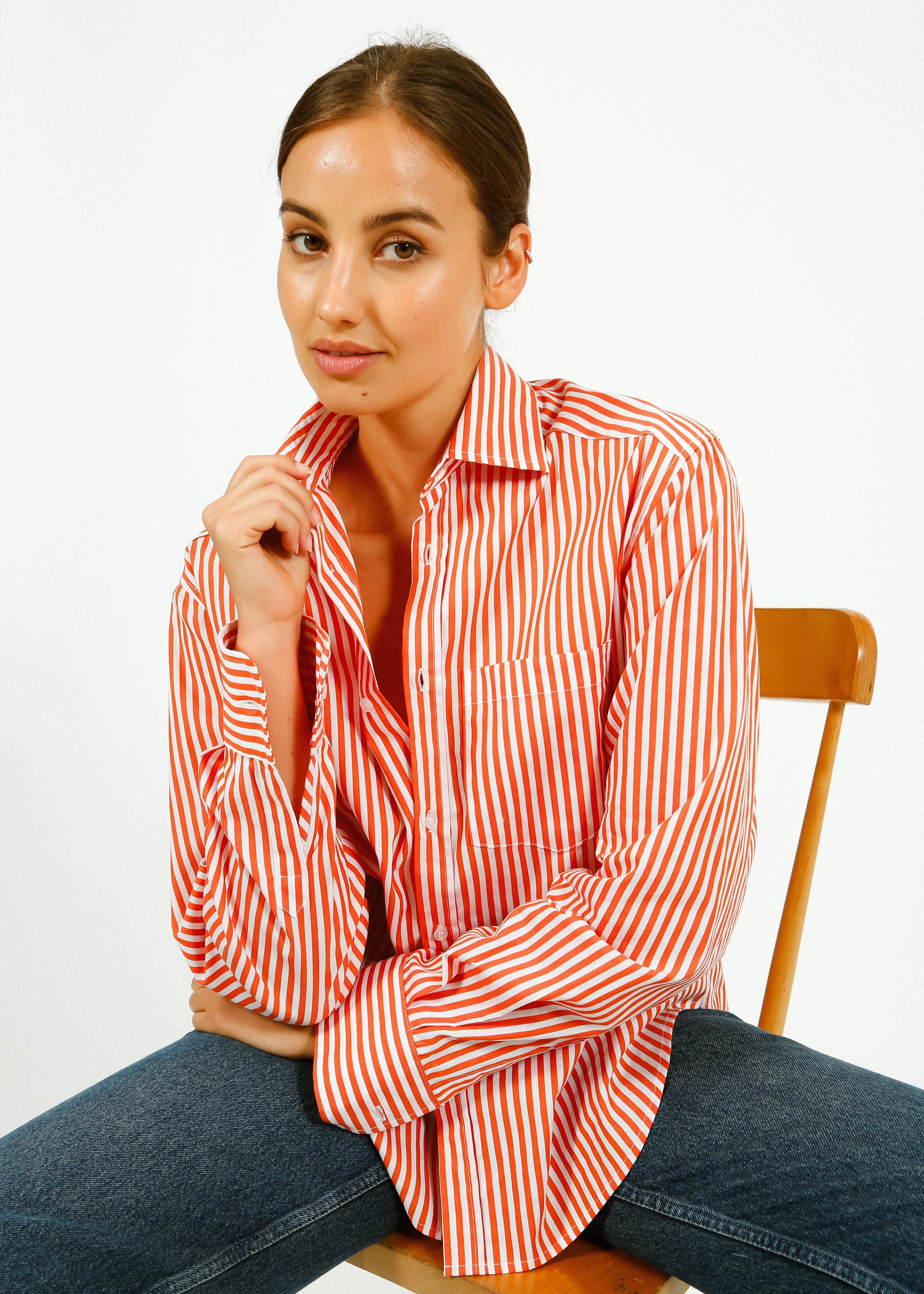 Effortlessly timeless, the Classic shirt is your go-to for easy everyday style. With its perfect length and curved hem, it’s designed for easy tucking, giving you endless styling possibilities. Made from high-quality cotton poplin in a bold orange and white stripe, this shirt is a true wardrobe staple. Wear it tucked into tailored pants during the week or pair it with jeans and roll up the sleeves for a relaxed weekend look.